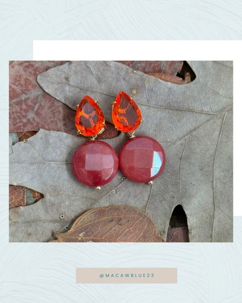 Fiery orange faceted stones paired with deep red orbs for a bold, radiant statement. Lightweight, dramatic, and designed to turn heads with confidence.